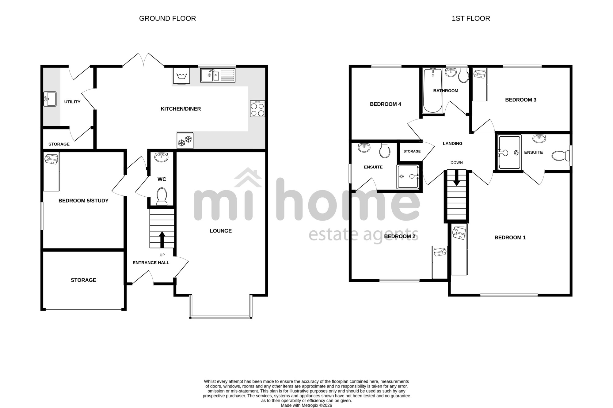 The internal accommodation comprises of - ground floor: entrance hallway, lounge, kitchen dining family room, utility room, WC and fifth bedroom