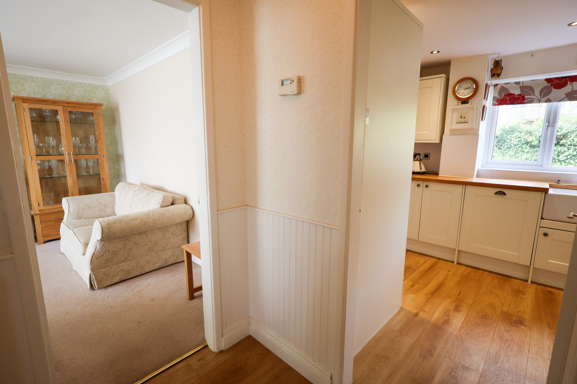 Externally the property benefits from a lawned front garden with rockery area with established plants, driveway and garage. To the rear is a good sized, West facing, lawned garden with paved patio area and mature borders of hedging and bushes. Viewing recommended to fully appreciate the location, size and outdoor space.