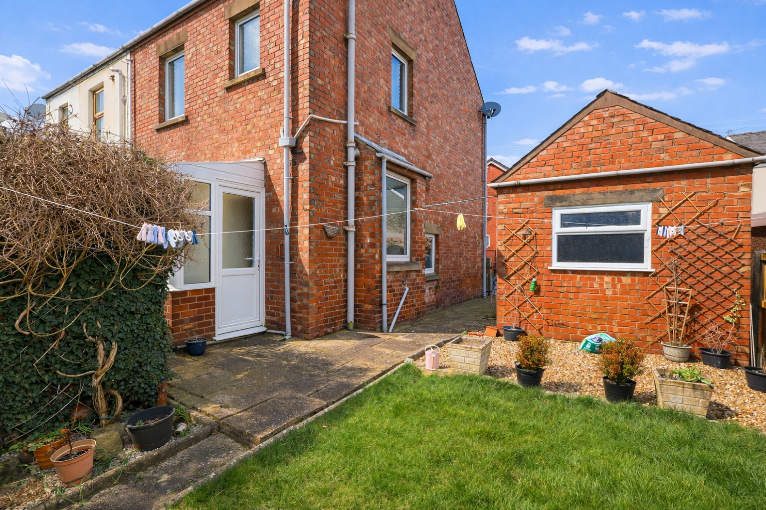 Externally the property benefits from a surprising amount of outdoor space with its South facing, lawned garden, paved patio area, rear yard, brick built outbuildings and garage. Viewing highly recommended! Rarely do properties in this immediate area come for sale with a garage, garden and yard!!