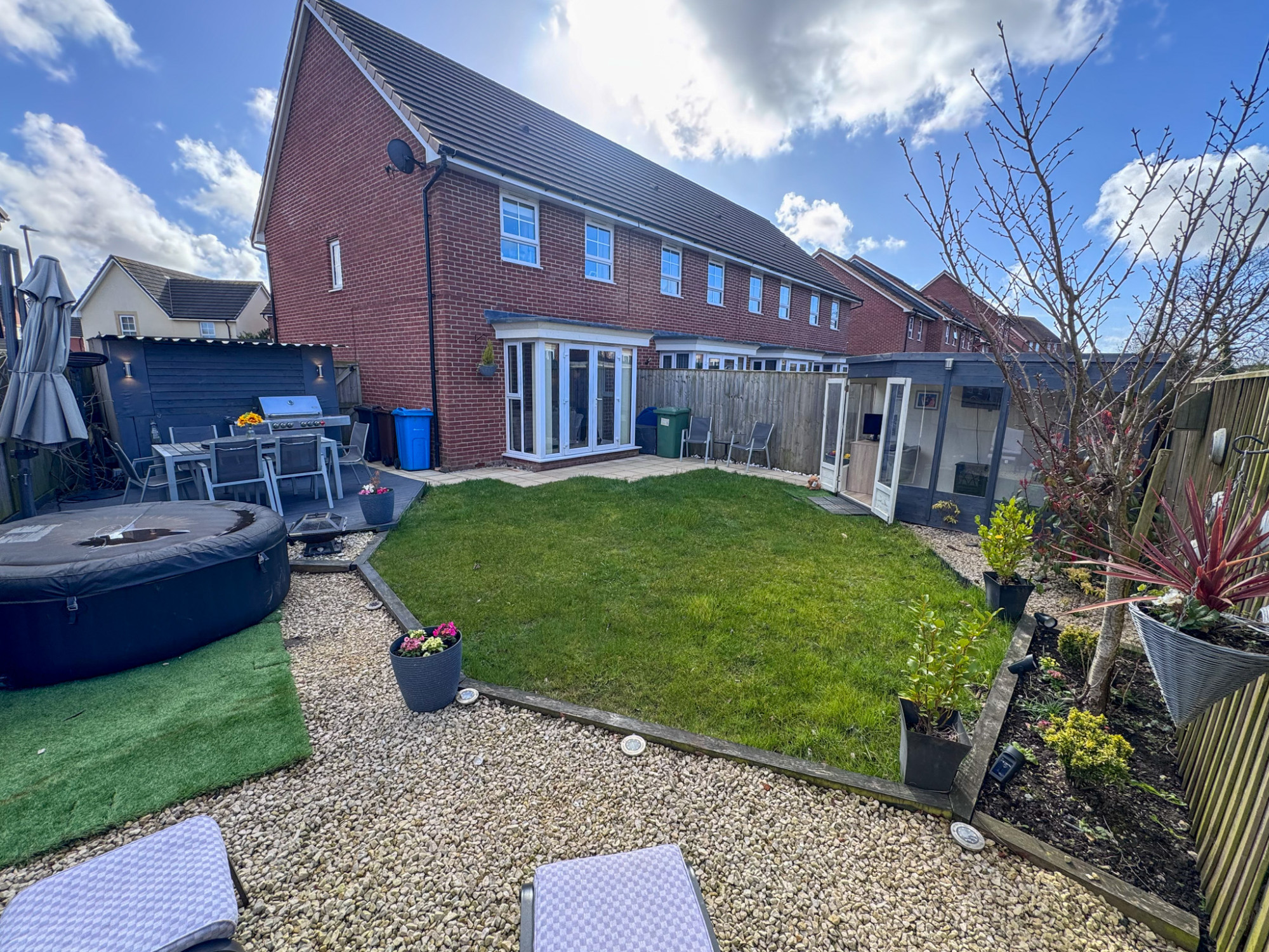Externally the property benefits from lawned front garden area with pretty white decorative loose stone and block paved driveway providing ample parking. To the rear is a large, enclosed garden with areas of lawn, paving, decorative loose stone and decking. Also with garden office, outdoor bar, external power and some planted borders. Viewing essential to fully appreciate!