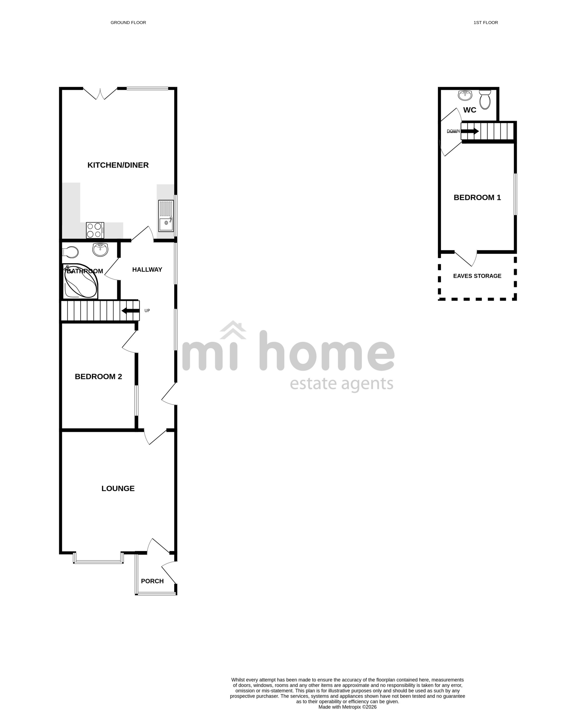 The internal accommodation comprises of - ground floor: entrance porch, lounge, hallway, kitchen diner, bathroom and double bedroom